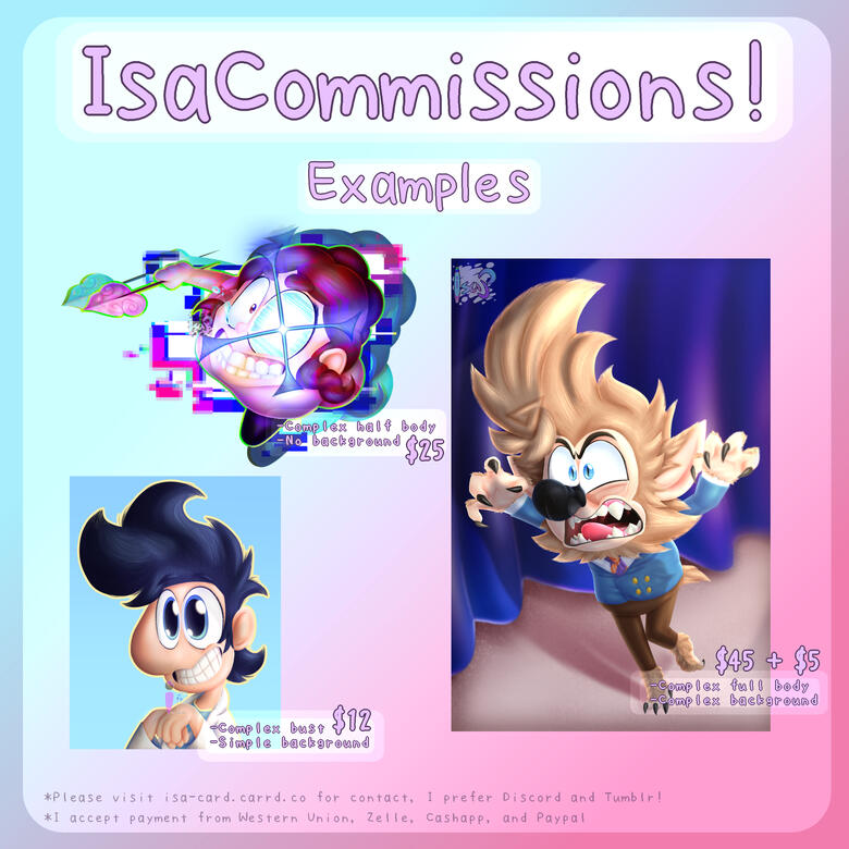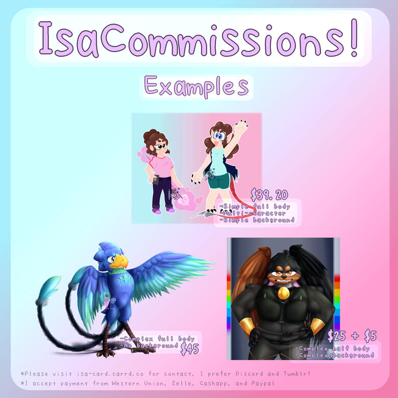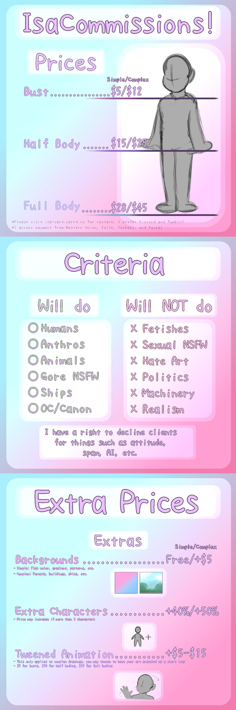 • Commissions will close when slots are filled and when commissions are unnecessary!• If you have trouble seeing the images below, click this link instead!